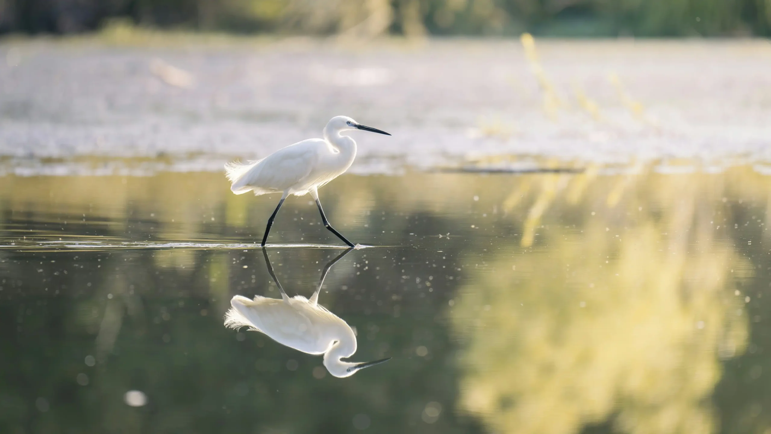 Elegant White Egret Reflection – 4K Nature Wallpaper