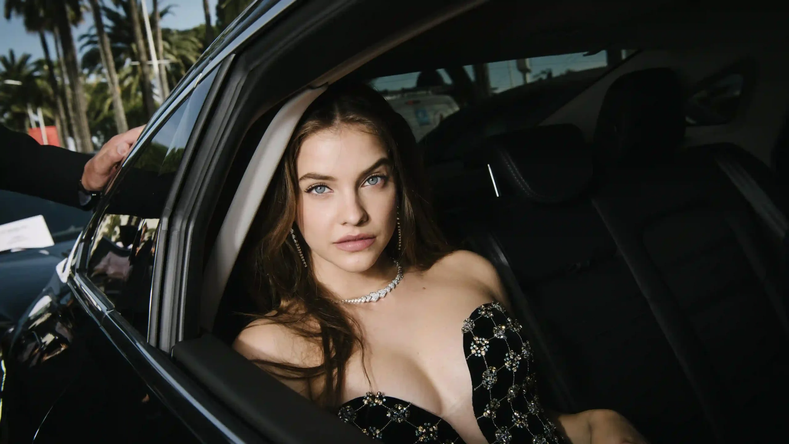 Capture the essence of high-fashion allure with this stunning 4K wallpaper of Barbara Palvin. Seated in the plush interior of a luxury vehicle, she radiates a quiet, commanding elegance. Her gaze is steady and magnetic, complemented by the intricate shimmer of her embellished gown and fine jewelry that catches the soft ambient light.