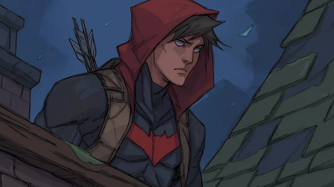 There is a powerful sense of brooding isolation and “anti-hero” energy in this composition. The clean, comic-book linework and muted color palette emphasize the loneliness of his crusade compared to the rest of the Bat-family. The perspective, looking up at Jason from the roof’s edge, reinforces his position as a silent guardian who operates in the grey areas of justice. This wallpaper is a definitive tribute to the “Resurrection of Jason Todd,” perfect for fans who prefer the darker, more grounded side of the DC Universe.