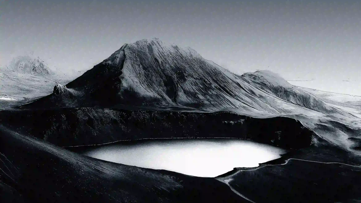 Monochrome Majesty: Volcanic Caldera – 4K Wallpaper posted in Dark category.