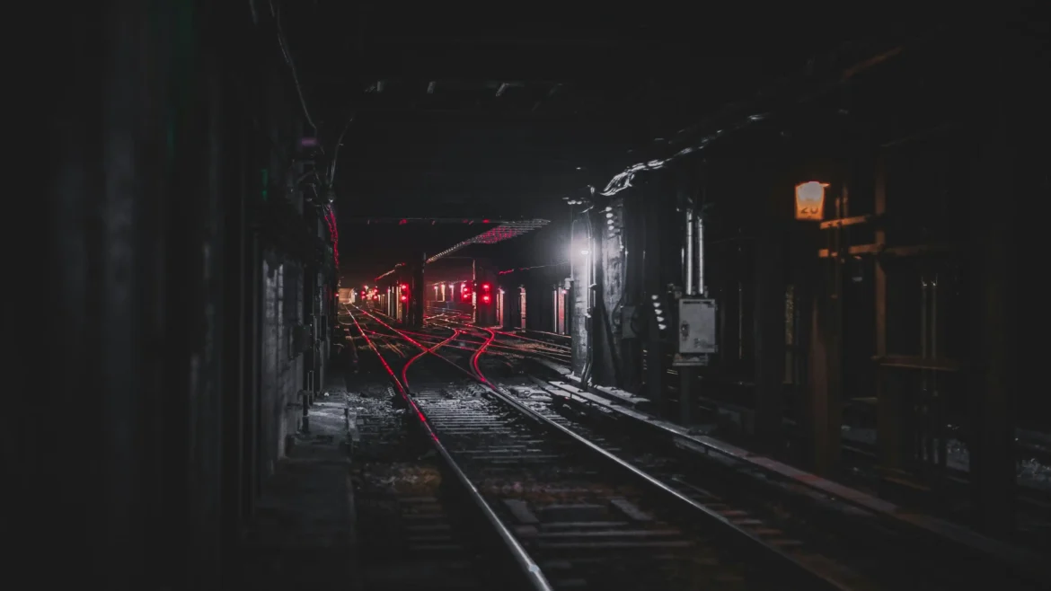 The Crimson Divide: Underground Subway Tunnel – 4K Wallpaper posted in Dark category.