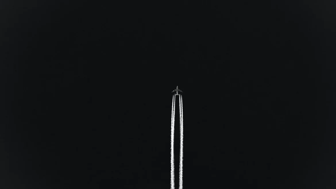 Vertical Trace: Jet and Contrails Against the Void – 4K Wallpaper posted in Dark category.