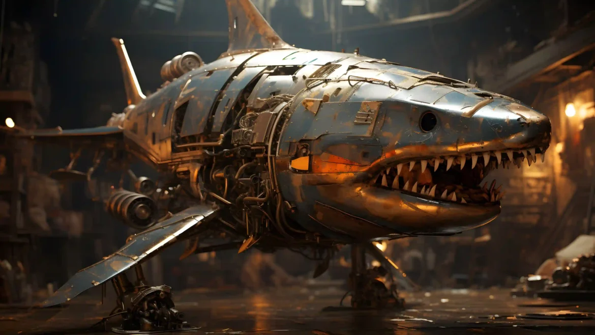 Steampunk Shark Robot with Mechanical Jaws – 4K Wallpaper posted in Fantasy category.
