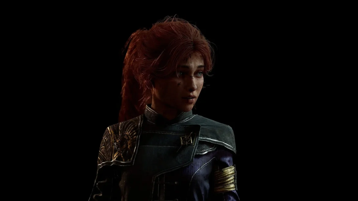 Emerging from the crushing weight of shadow, this 4K wallpaper captures Maelle in a moment of raw, battle-worn vulnerability. The pitch-black void behind her emphasizes every detail of her journey—the grit on her face, the stray embers of her copper hair, and the intricate gold-etched patterns of her armor. A singular, soft light catches the resolve in her eyes, highlighting a warrior who has seen the edge of the world and refused to blink.