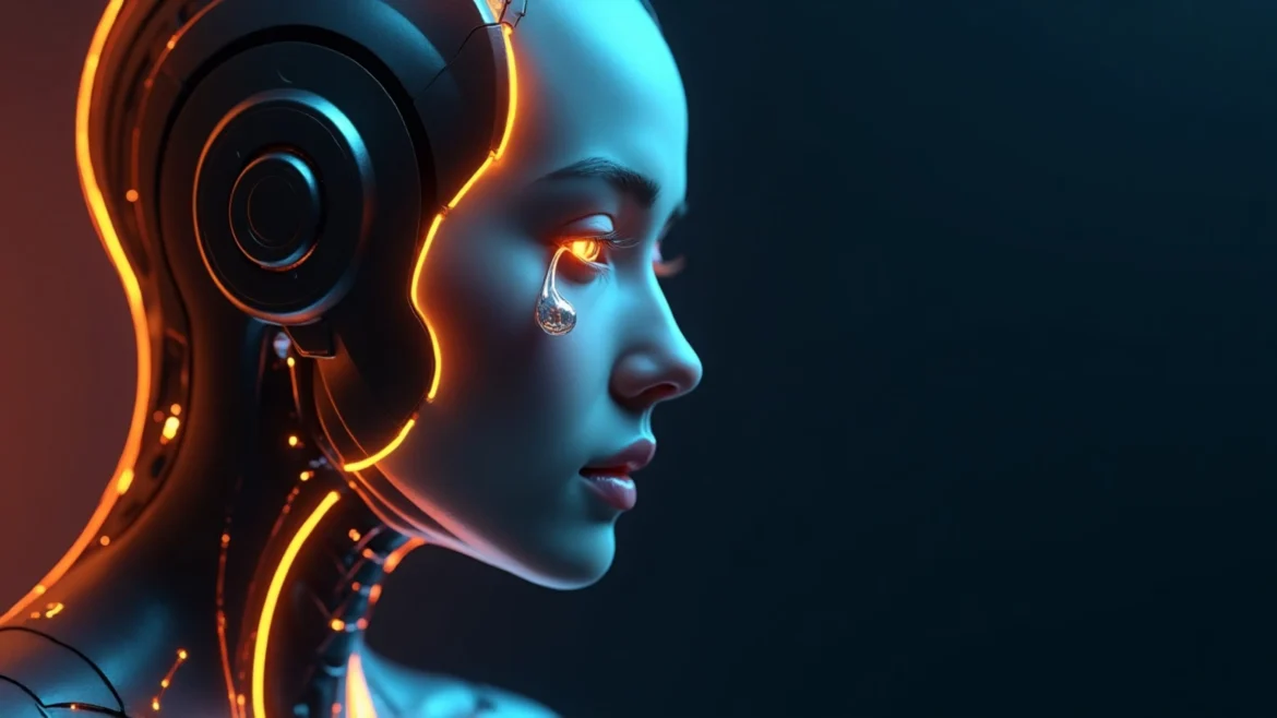 Her eyes are not programmed to cry, yet here she is, defying her design.