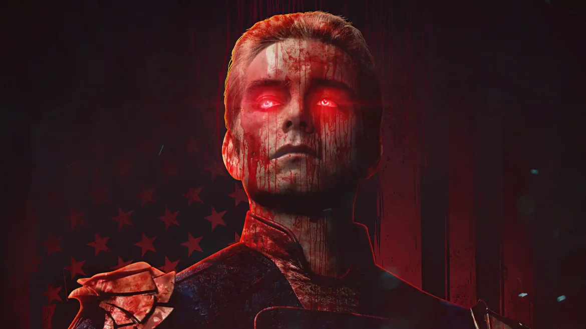 Bring the chilling intensity of Homelander to your screen with this dramatic 4K wallpaper. The image captures the “hero” in a deeply unsettling light, his face and suit splattered with blood, his eyes glowing with a sinister red light. Behind him, a worn American flag provides a stark and ironic backdrop, symbolizing the dark corruption of the superhero ideal. His expression is one of cold, unwavering menace, a powerful contrast to the patriotic symbols that surround him.