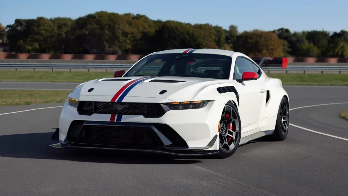 Fuel your passion for speed with this aggressive 4K wallpaper of the 2025 Ford Mustang GTD. Coated in a pristine white with striking “Spirit of America” red and blue racing stripes, this track-bred beast sits poised on the tarmac, ready to dominate. From its massive carbon-fiber wing and aero-sculpted vents to the high-performance Brembo brakes peeking through dark forged wheels, every inch of this car screams engineering excellence.