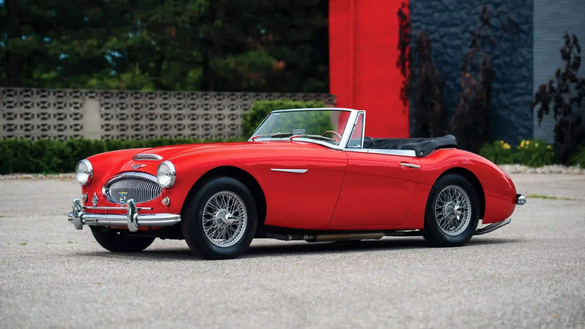 Revive the golden era of motoring with this vibrant 4K wallpaper of the legendary 1962 Austin-Healey 3000. Bathed in a striking crimson red, this classic British roadster stands as a masterpiece of vintage engineering and timeless design. From the gleaming chrome grille to the intricate wire-spoke wheels, every detail captures the spirit of open-top freedom and the sophisticated charm of a bygone era.