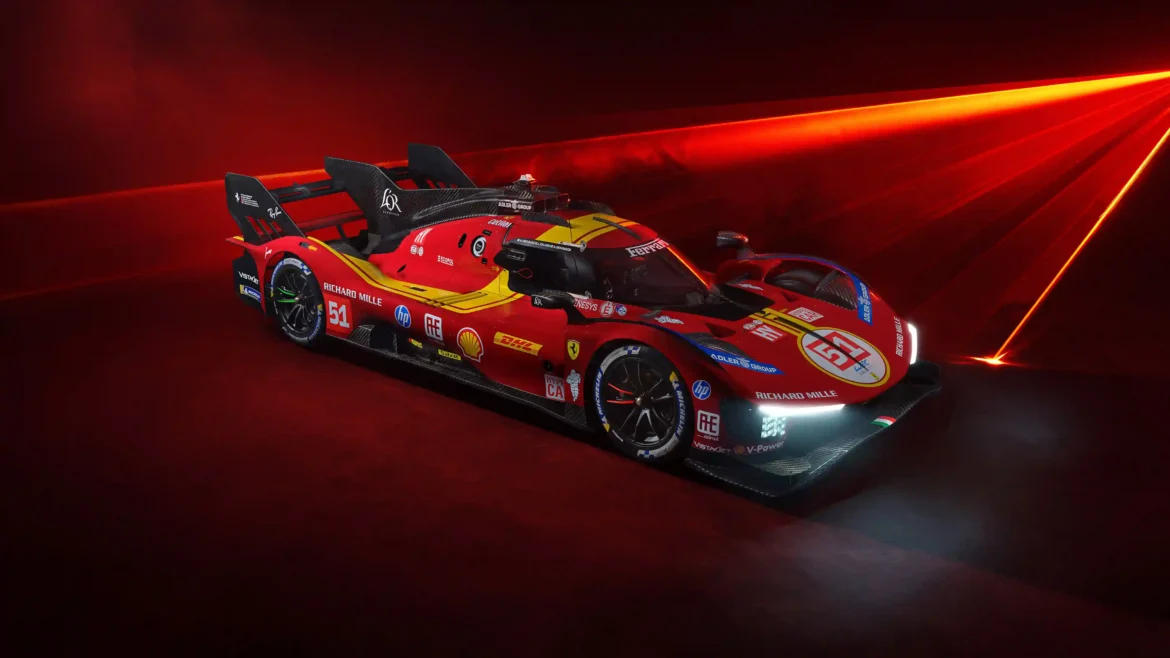 Bathed in a dramatic red mist and pierced by sharp orange laser beams, the Ferrari 499P stands as a testament to peak endurance engineering. This Le Mans Hypercar, bearing the iconic number 51, showcases a sophisticated aerodynamic profile with its massive carbon fiber rear wing and aggressive front splitters. The striking red and yellow livery, adorned with technical partners like Shell, Richard Mille, and AF Corse, highlights Ferrari’s triumphant return to the top tier of world endurance racing.